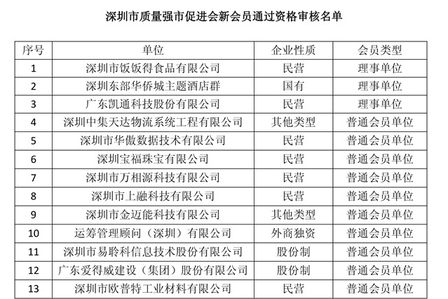 附:深圳市质量强市促进会新会员通过资格审核名单