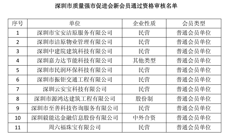 附:深圳市质量强市促进会新会员通过资格审核名单