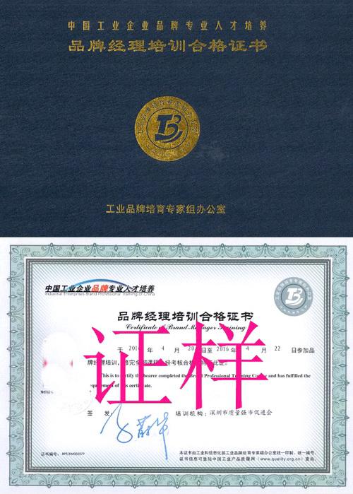 附件2:品牌经理培训合格证书样式
