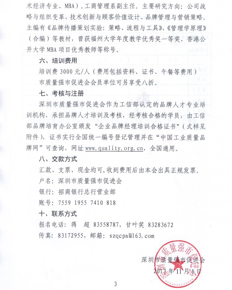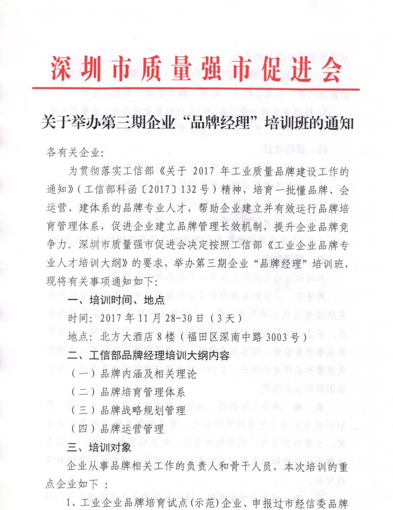 关于举办第三期企业“品牌经理”培训班的通知