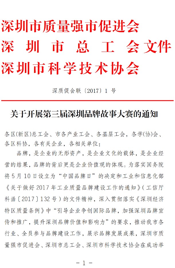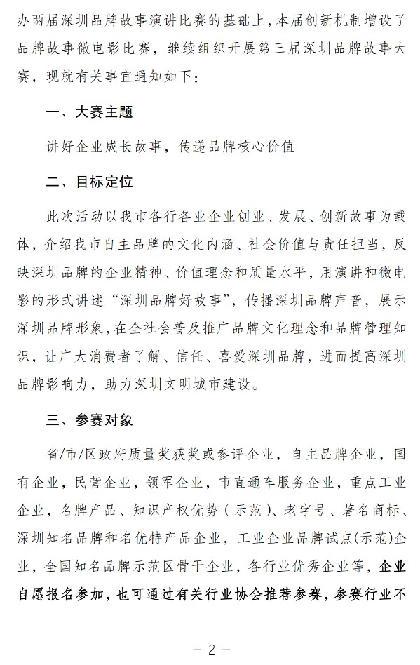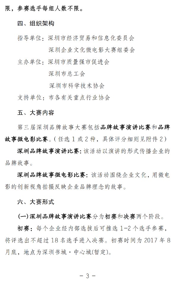 关于开展第三届深圳品牌故事大赛的通知