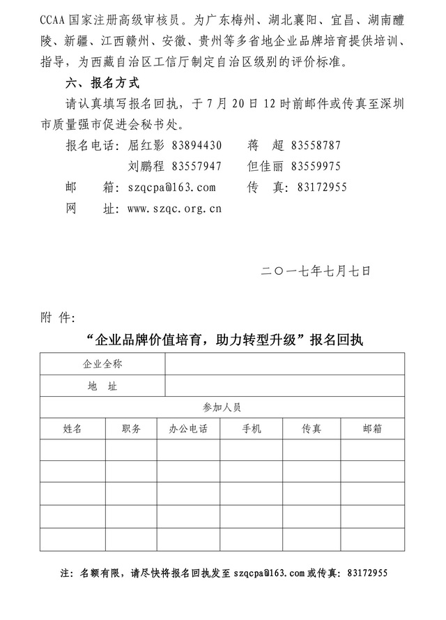 深圳市质量强市促进会邀请会员参加7月座谈会