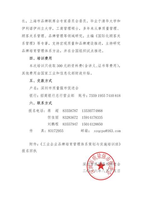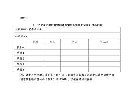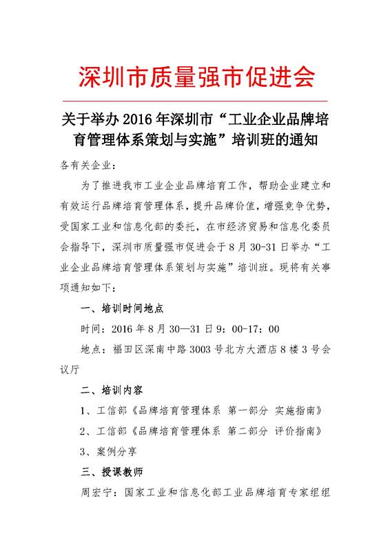 关于举办2016年深圳市“工业企业品牌培育管理体系策划与实施”培训班的通知
