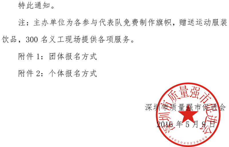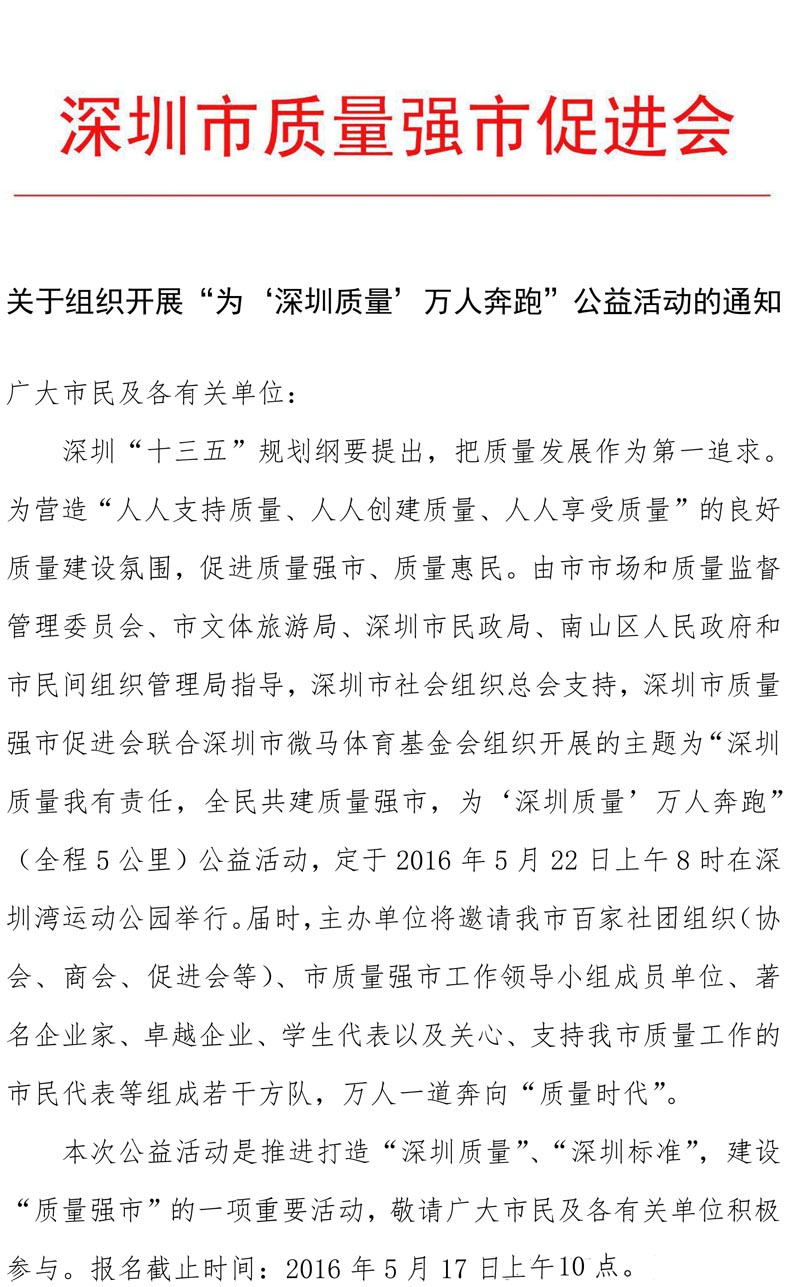 关于组织开展“为‘深圳质量’万人奔跑”公益活动的通知