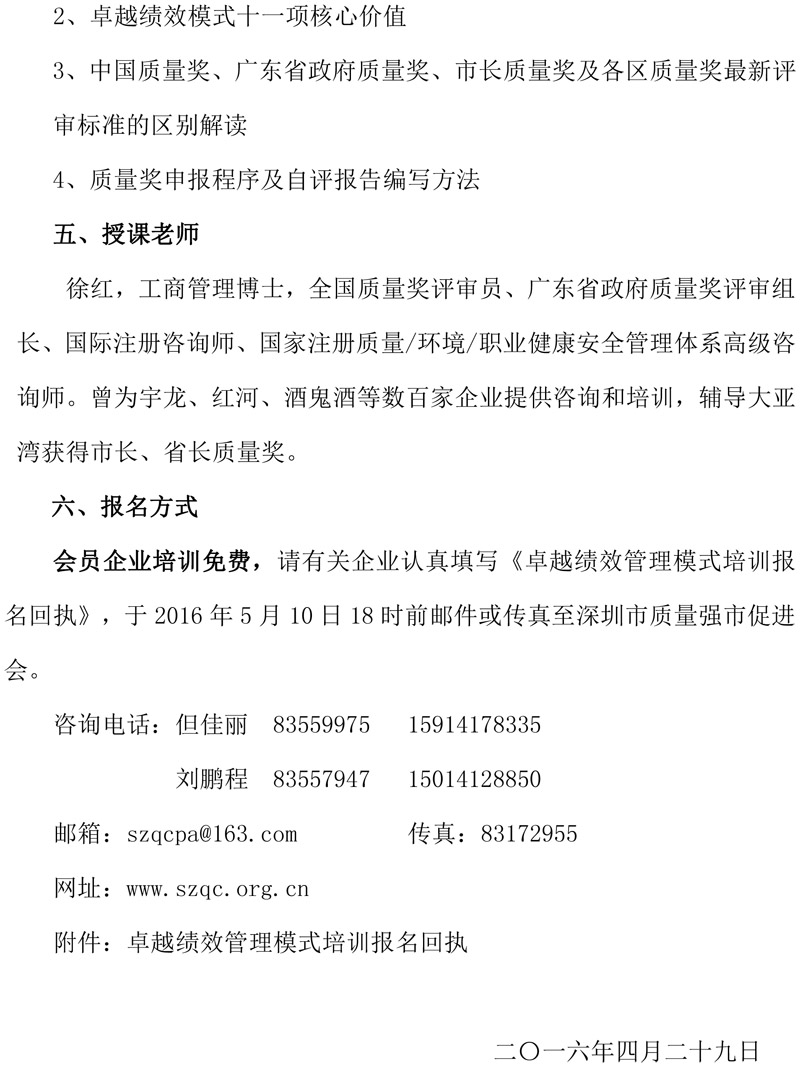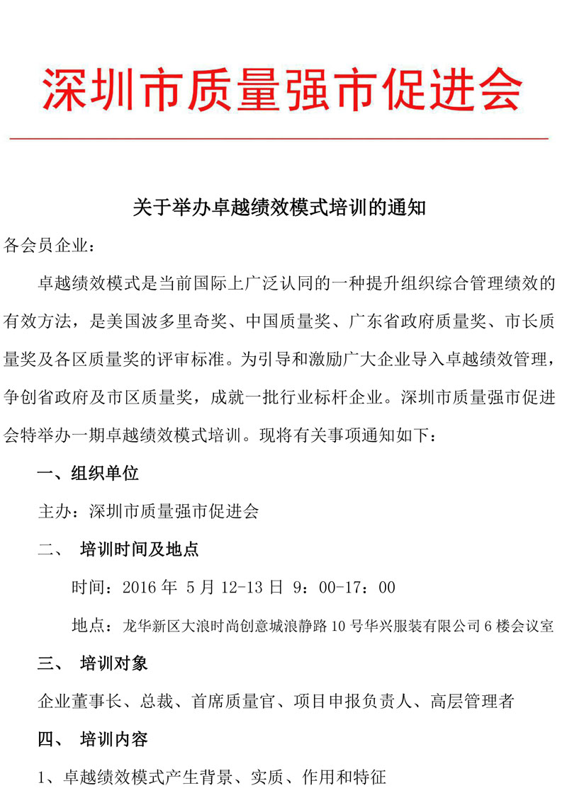 关于举办卓越绩效模式培训的通知