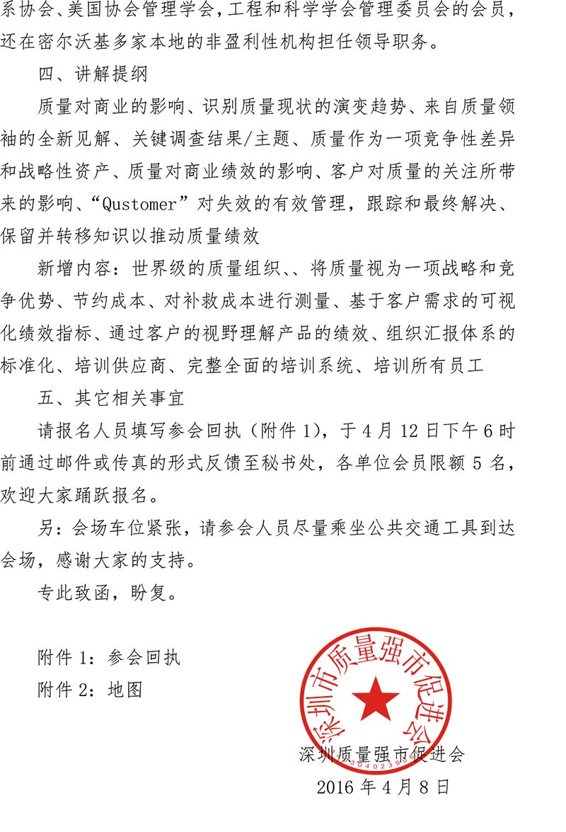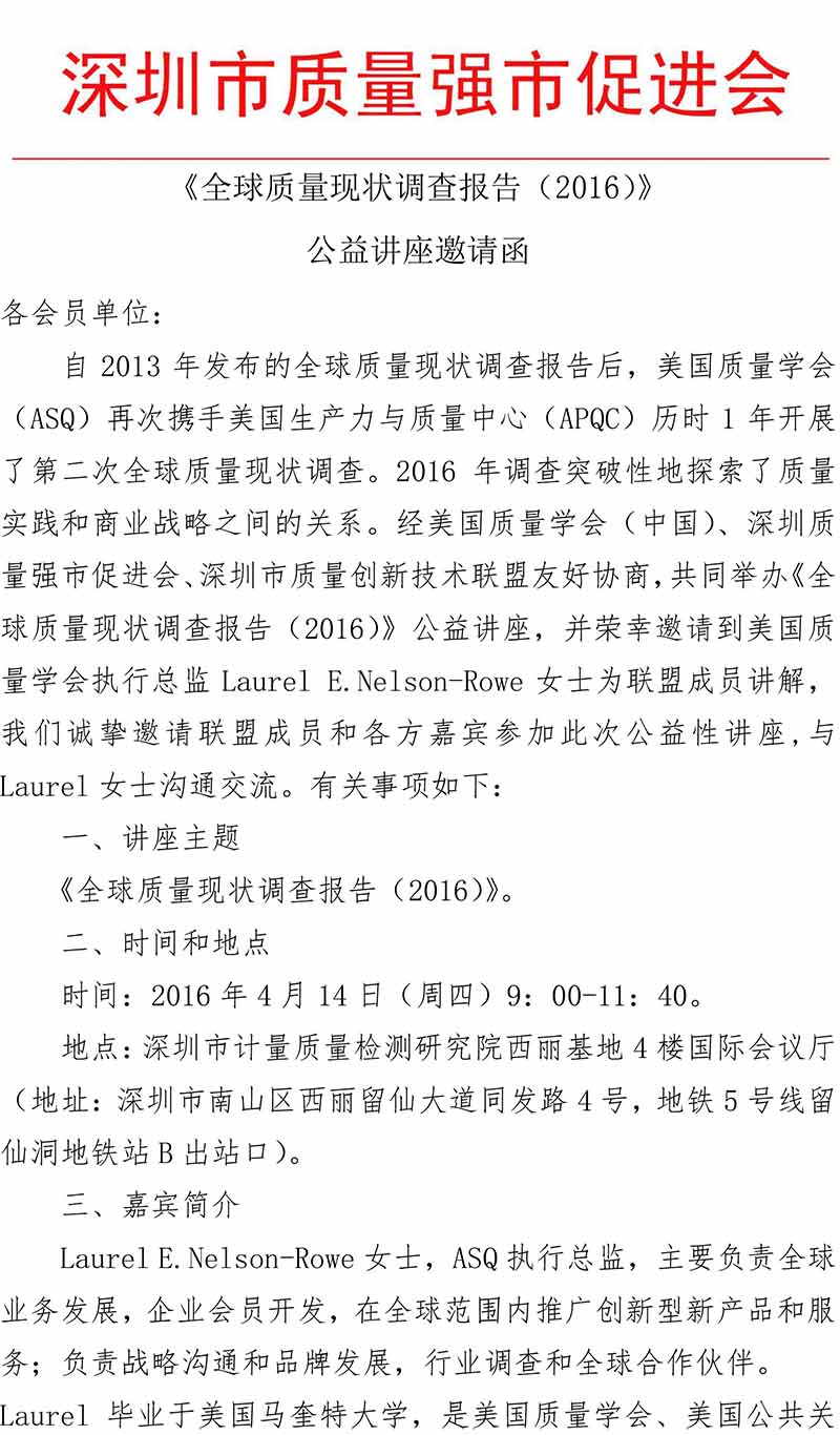《全球质量现状调查报告(2016)》 公益讲座邀请函