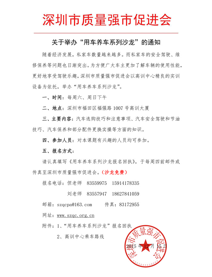 关于举办“用车养车系列沙龙”的通知:
