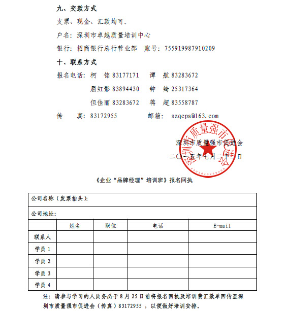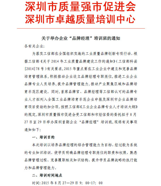 关于举办企业“品牌经理”培训班的通知