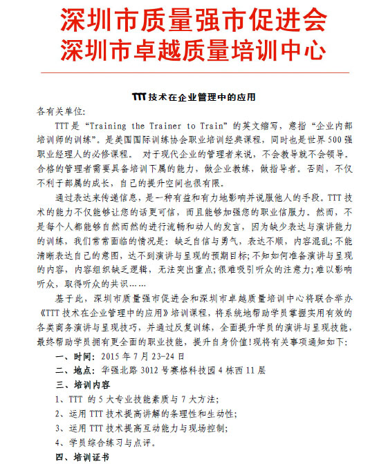 关于“TTT技术在企业管理中的应用”的培训通知
