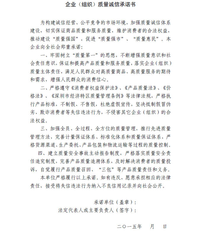 关于组织开展“质量诚信承诺”活动的通知