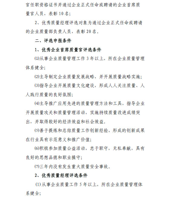 深圳市优秀企业首席质量官申报表