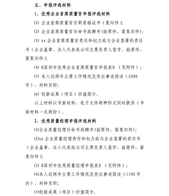 深圳市优秀质量经理申报表
