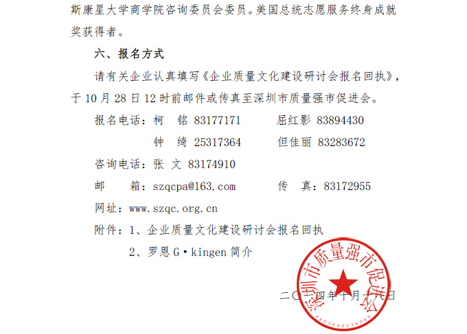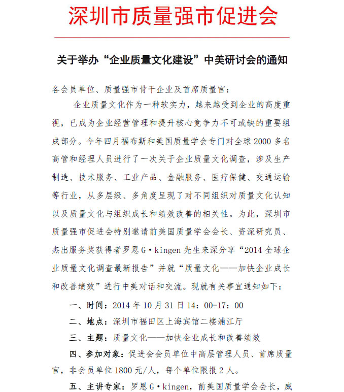 关于举办“企业质量文化建设”中美研讨会的通知