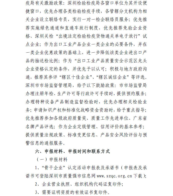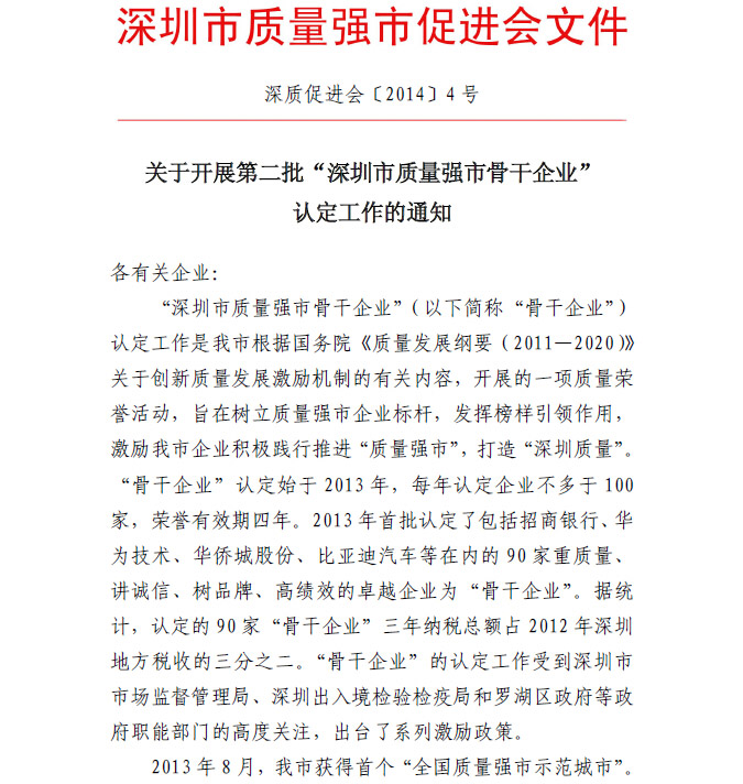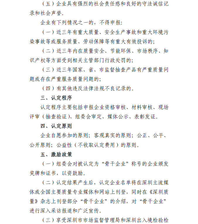 深圳市质量强市骨干企业认定标准