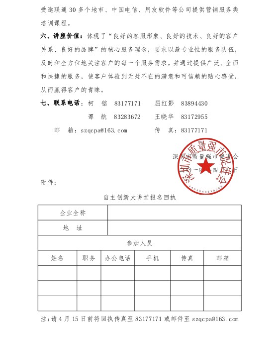 关于召开深圳市企业首席质量官制度建设工作推进大会暨深圳市企业首席质量官俱乐部二次会员大会的通知