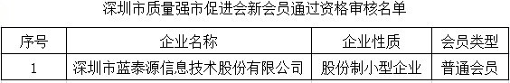附:深圳市质量强市促进会新会员通过资格审核名单