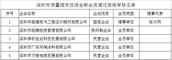 附:深圳市质量强市促进会新会员通过资格审核名单