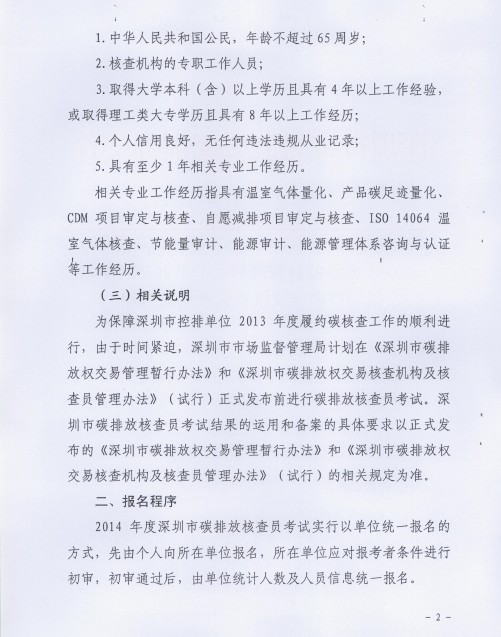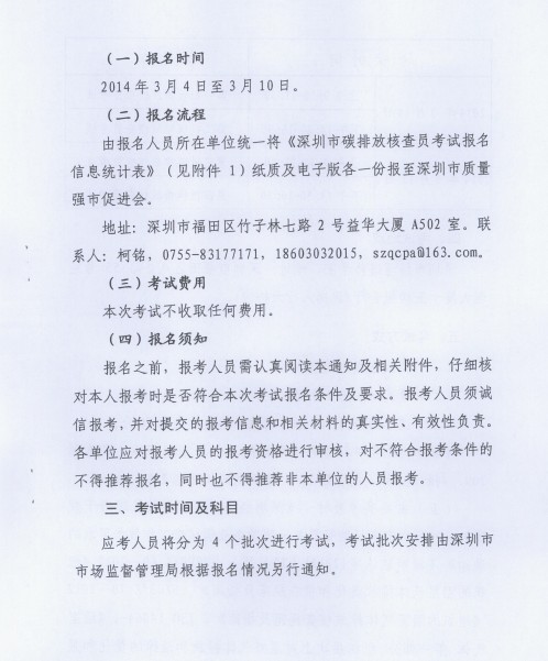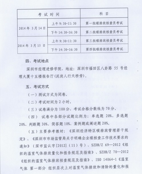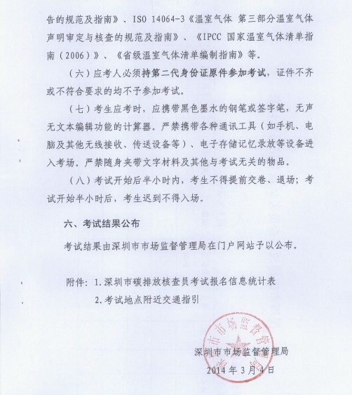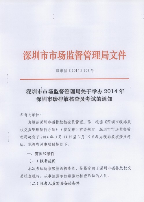 深圳市市场监督管理局关于举办2014年深圳市碳排放核查员考试的通知