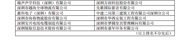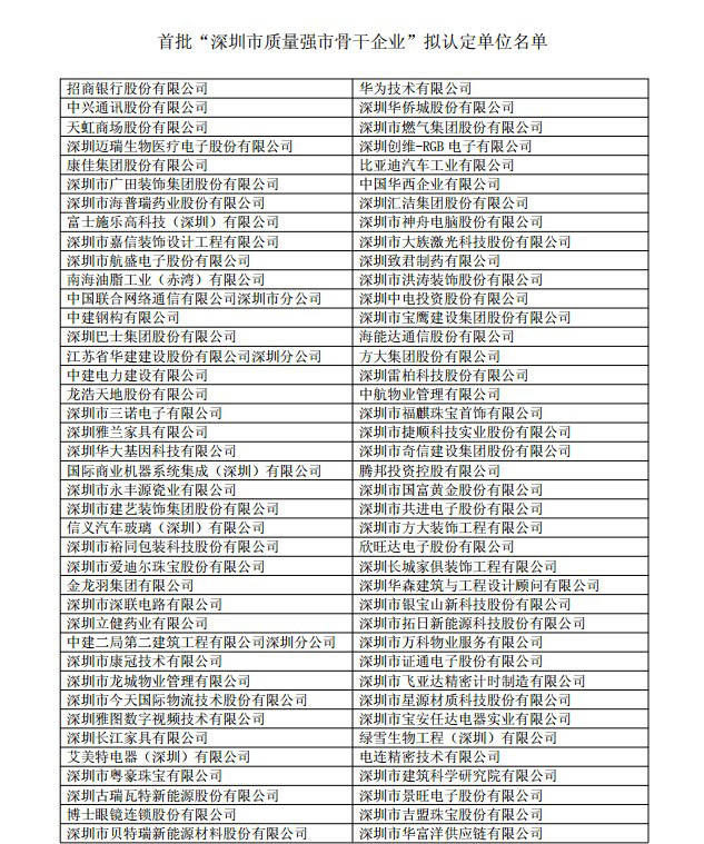 附:首批“深圳市质量强市骨干企业”拟认定单位名单: