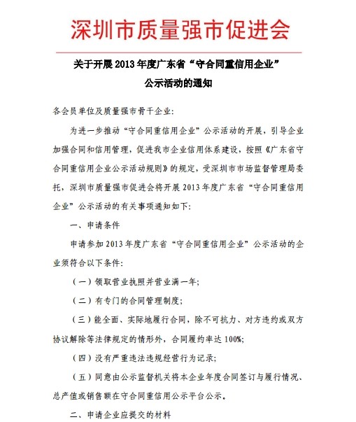 关于开展2013年度广东省“守合同重信用企业” 公示活动的通知