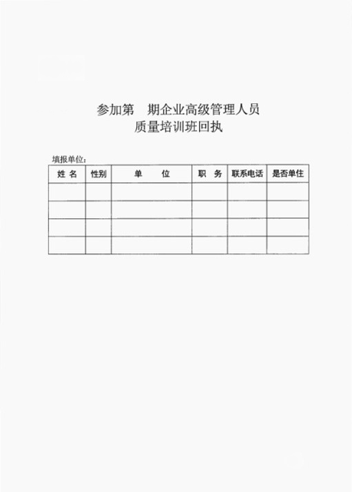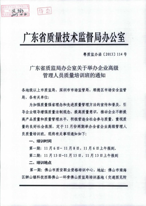 广东省质监局办公室关于举办企业高级管理人员质量培训班的通知