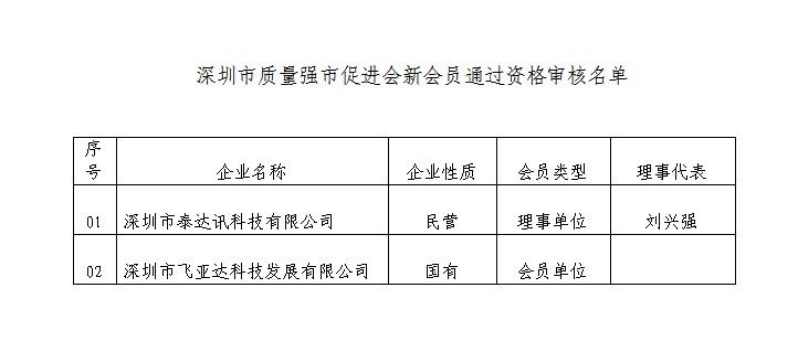 附:深圳市质量强市促进会新会员通过资格审核名单